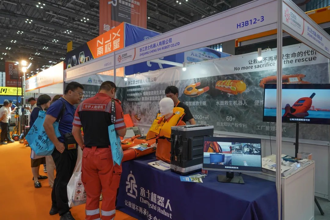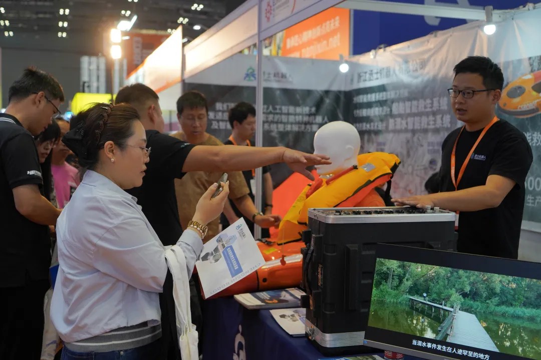 丞士機(jī)器人攜船舶智能救生系統(tǒng)、防溺水智能救生系統(tǒng)、U型智能救生圈等水域救援裝備亮相長三角應(yīng)急展。